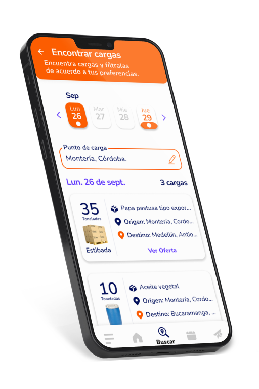 Descarga la app para encontrar y llevar cargas de manera rápida, segura y eficaz
